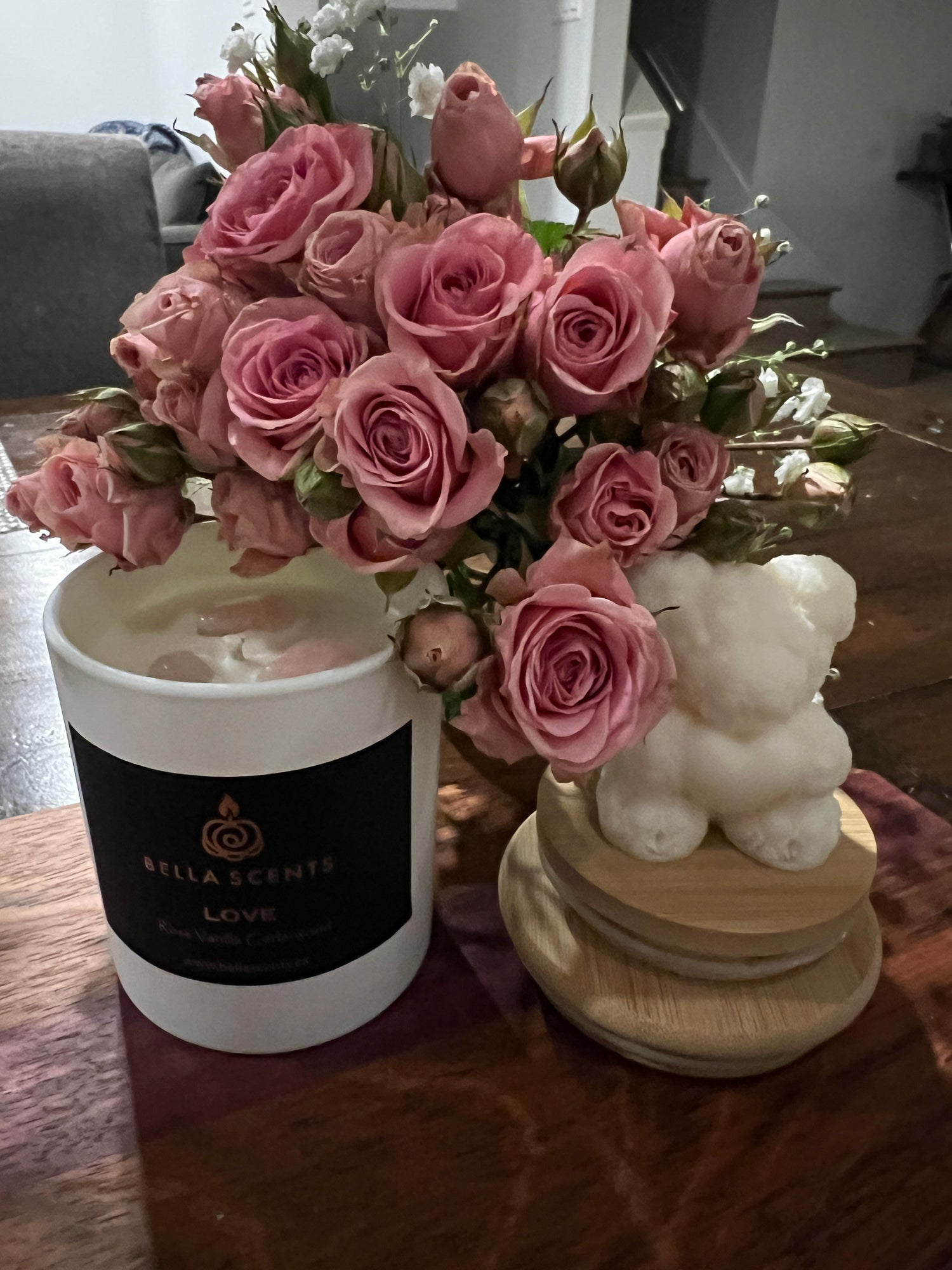 Each candle is made in a small batch style and hand poured with love. While using the best quality ingredients free from harmful chemicals.